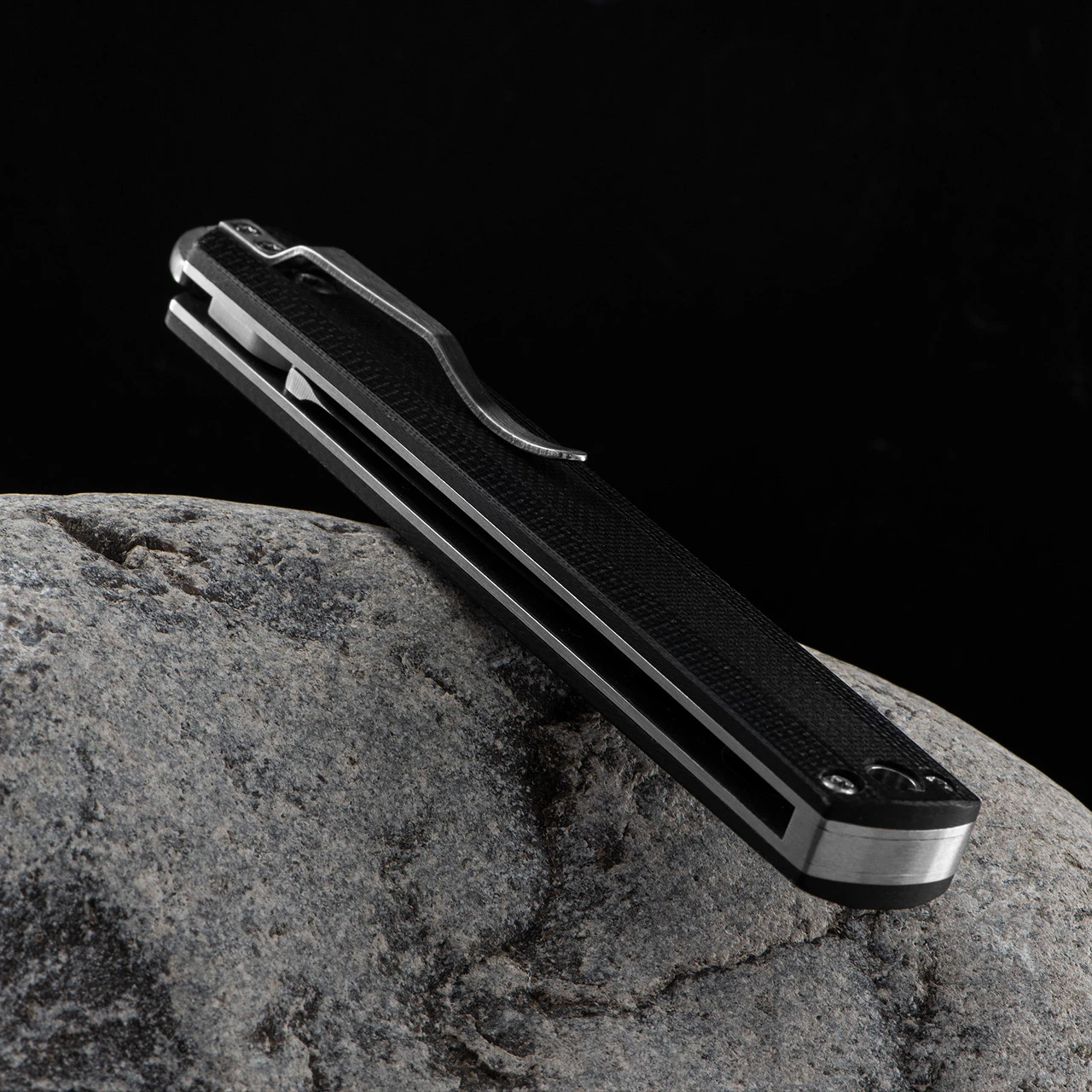 The handle features stainless liners and a milled clip, with scales of tough and lightweight G10.