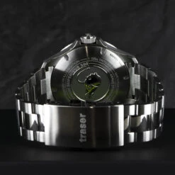 This timepiece is a tribute to the early times of professional diving watches with many historical references: the egg-shaped 10 ATM water resistant case, the typically curved crystal, printed Super-LumiNova indices and a bezel inlay made of aluminium.