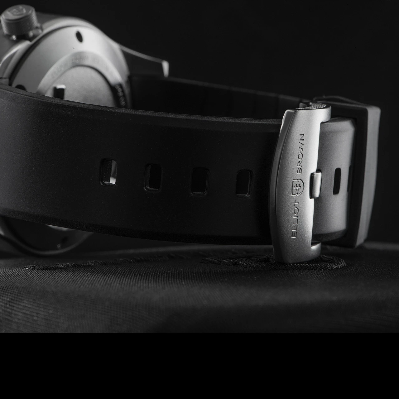 The Elliot Brown Holton Automatic 101-A11 is an automatic watch with hard won military credentials, toned back a notch with super technical matt vapour blasted steel and soft comfy rubber.