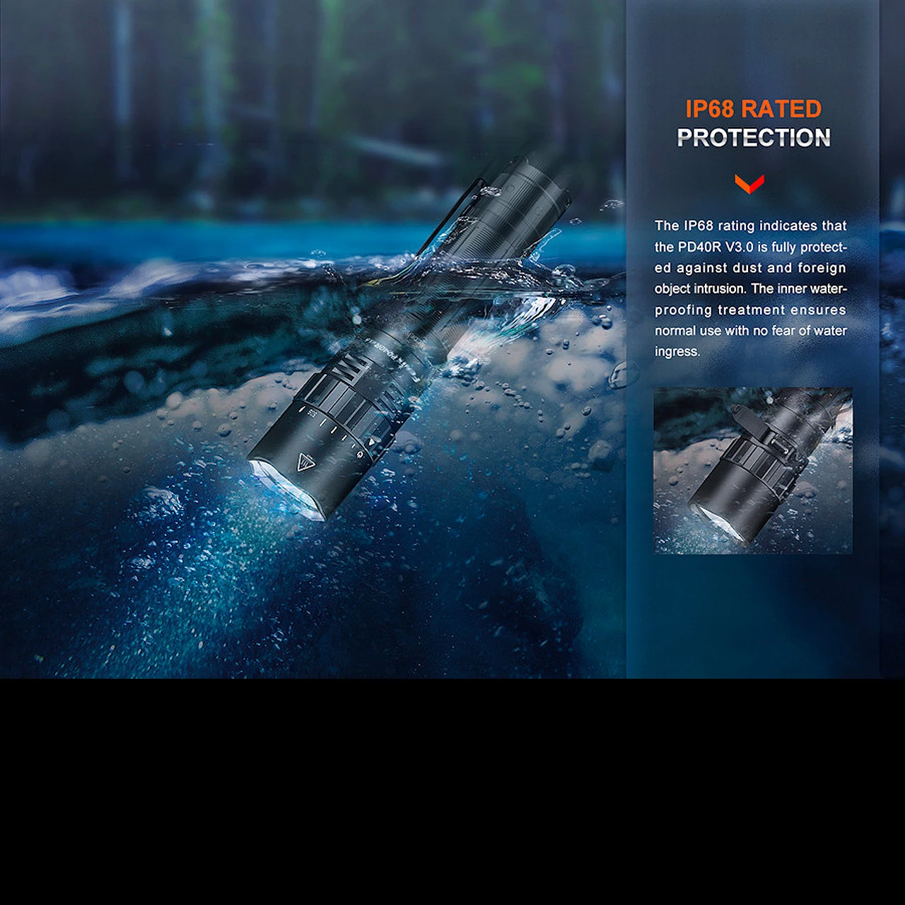 The torch is an updated version of the popular PD40R, with the main difference being the 21700 battery which provides improved runtimes. Additionally, the V2.0 model is operated using a rotary switch at the head of the light for smooth and easy mode selection.