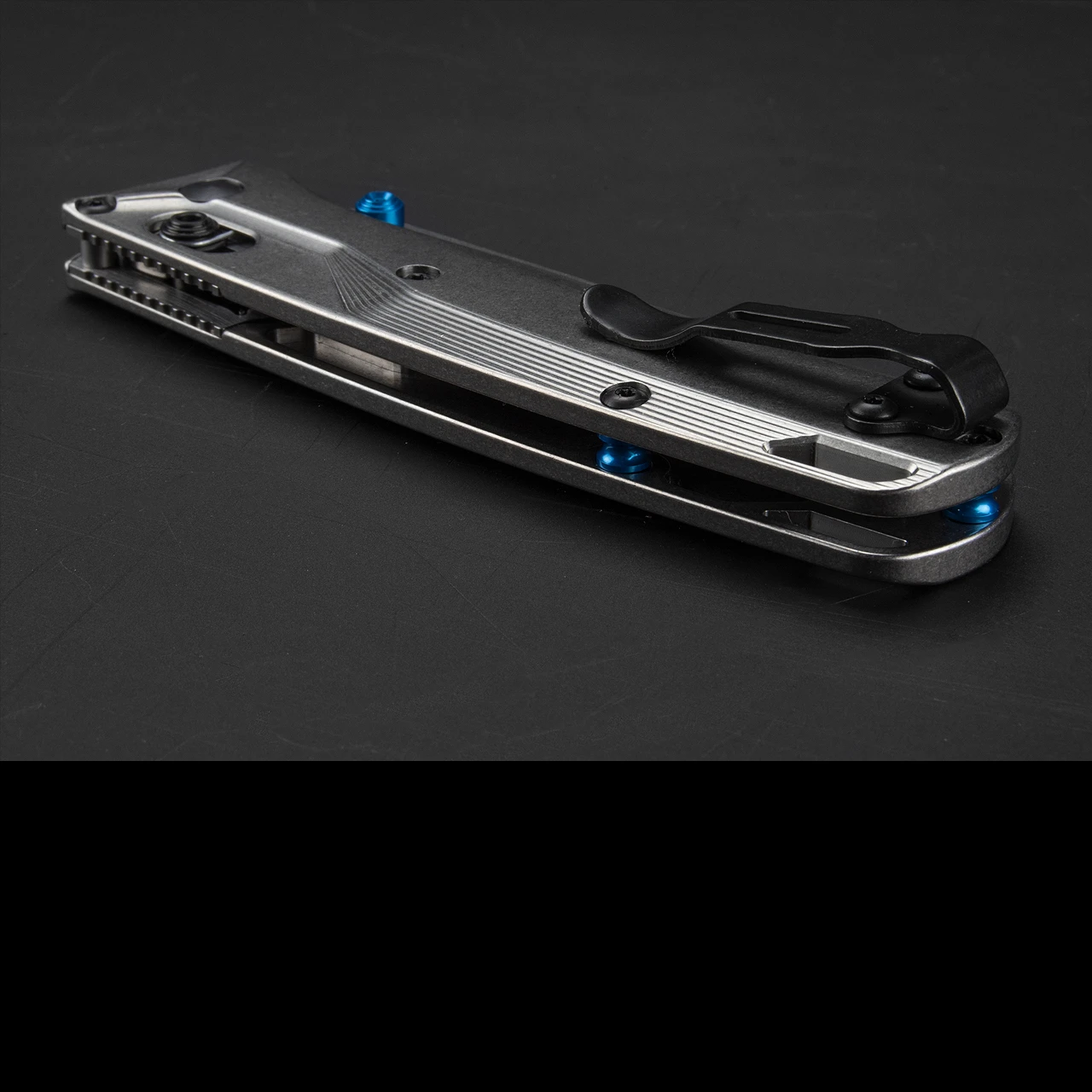 The Benchmade Bugout is undeniably an all around fantastic knife. Flytanium pulled out all the stops on a fresh new upgrade with Crossfade Titanium scales.