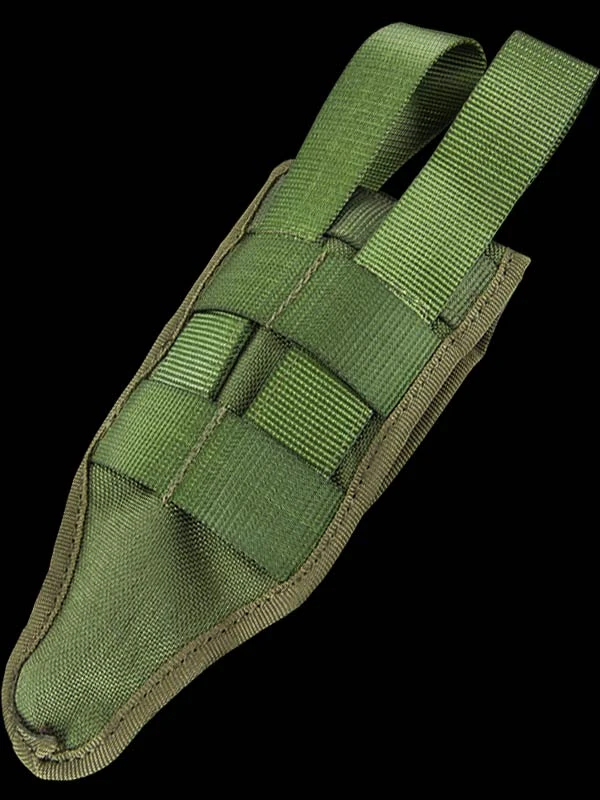The handles are stored in the two front pockets of the sheath whilst the three utensils fit in the rear pocket. The nylon sheath includes two adjustable straps to conveniently attach to your belt or gear.