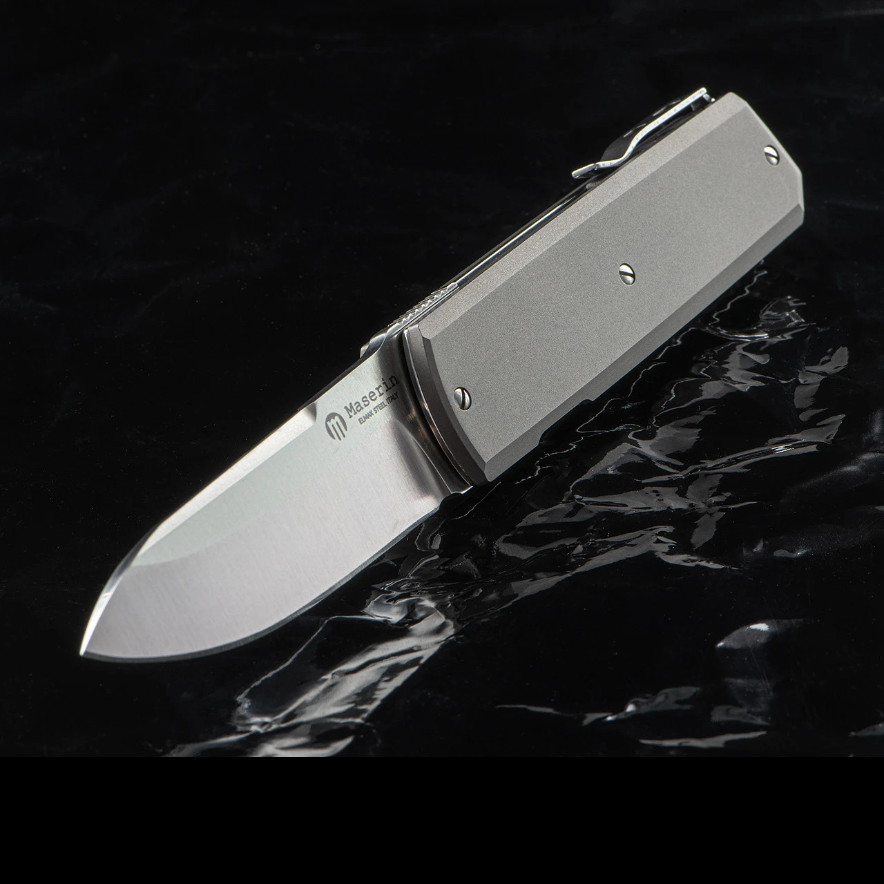 The compact, powerful blade is made from layered ELMAX stainless steel and has a jimping thumb ramp that enables one handed opening. It locks into place securely with a linerlock mechanism.
