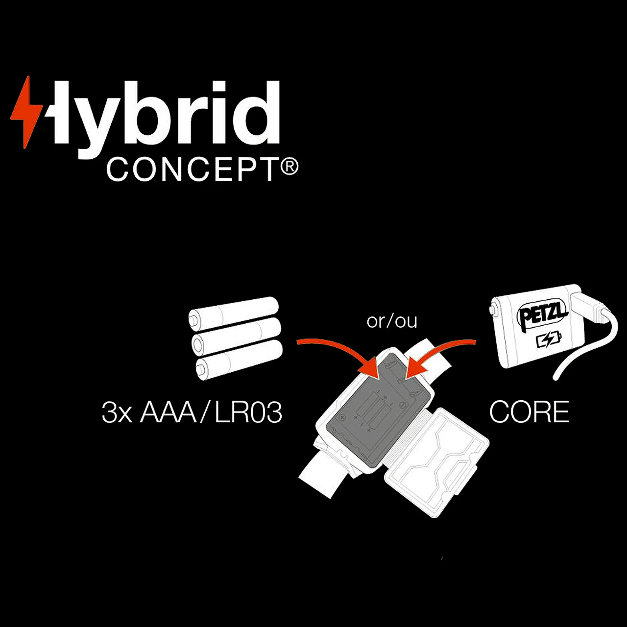 – ARIA 2 RGB comes with three AAA/LR03 batteries and is also compatible with the CORE rechargeable battery (not included), with its HYBRID CONCEPT design