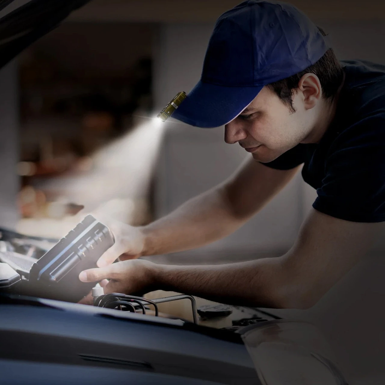It’s powered by a built-in LiPo battery (charged via USB-C port), and a replaceable AAA battery, available separately. Unlock the light head to replace the AAA battery and lock it to use the AAA battery automatically.