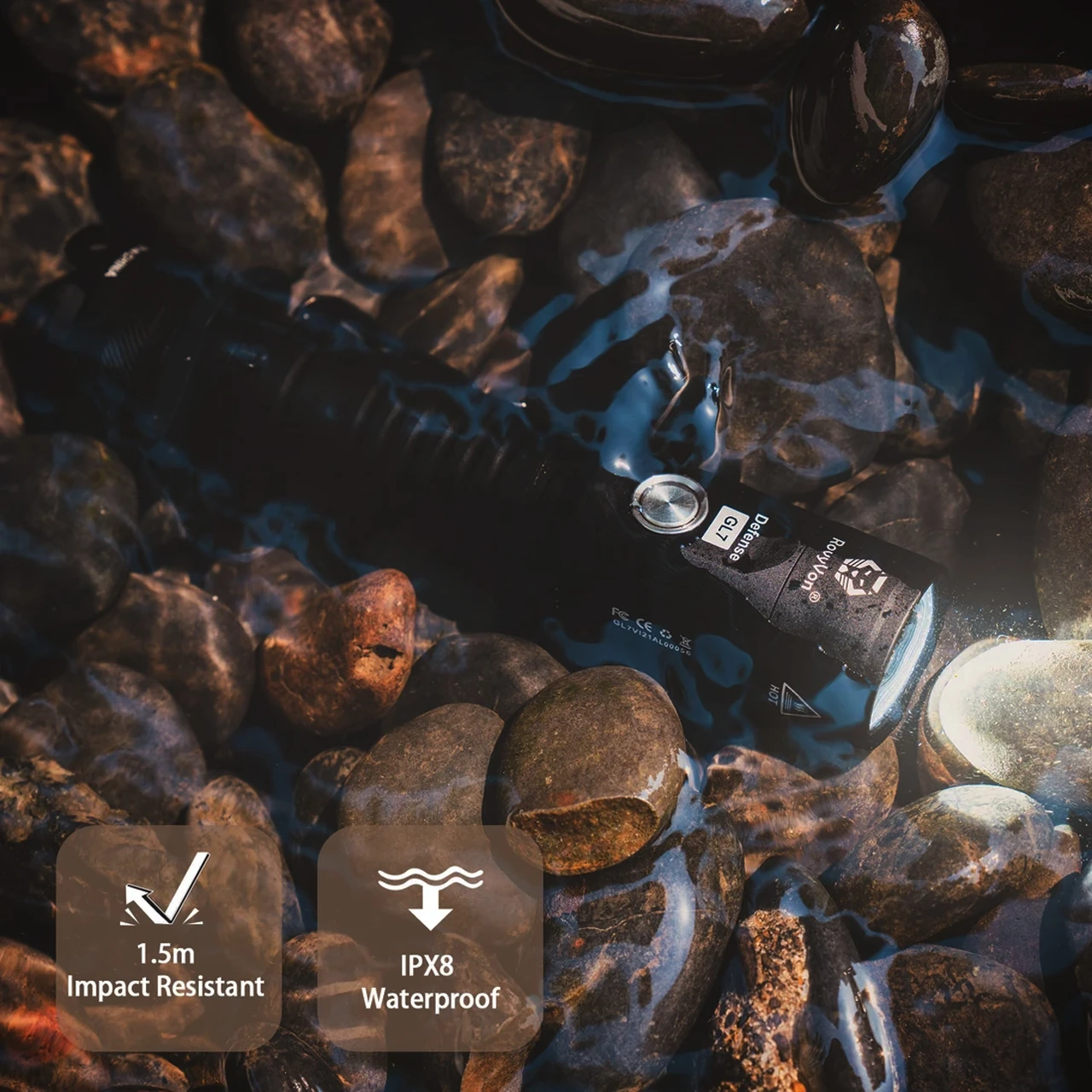 The Rovyvon GL7 utilizes a Luminus SST-40 LED that boosts max 2000 lumens. The included 3400mAh 18650 battery helps to achieve more sustainable run times. On turbo boost mode (2000 lumens) the beam will last for 3 minutes before dropping to 750 lumens for the next 86 minutes constantly on. It’s rechargeable via the built-in USB-C port and fully charged in 2 hours. The 1″ body diameter fits most mounts making the GL7 a gun light.