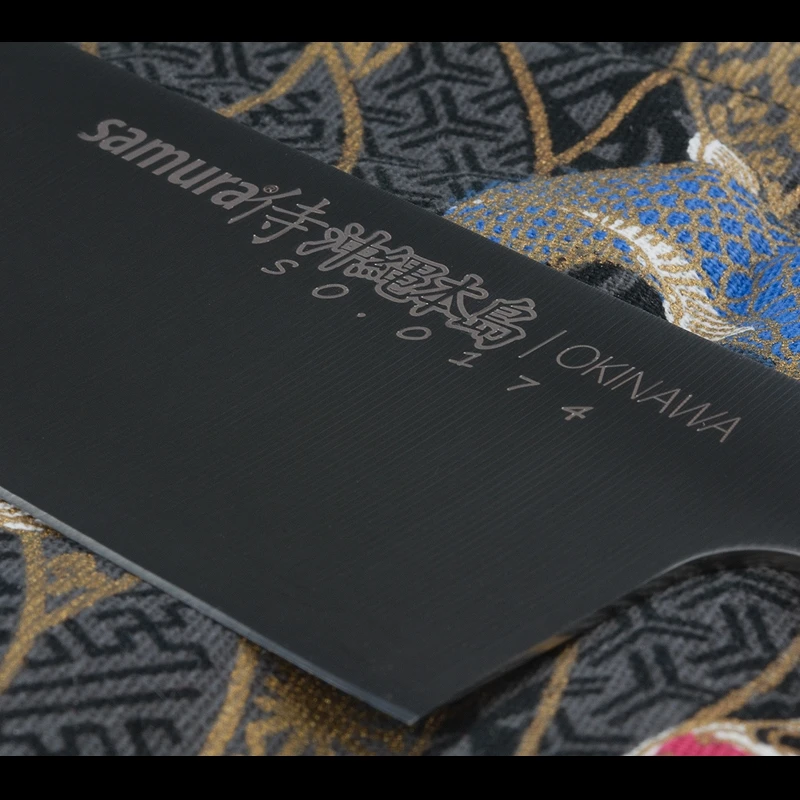 In common with the other knives in Samura’s Okinawa series, the rosewood handle is a sturdy and stylish feature. It is also ergonomic, non-slipping and ensures a firm grip with great manoeuvrability. Moreover, a black nylon bolster adds another level of comfort in use and better weight balance.