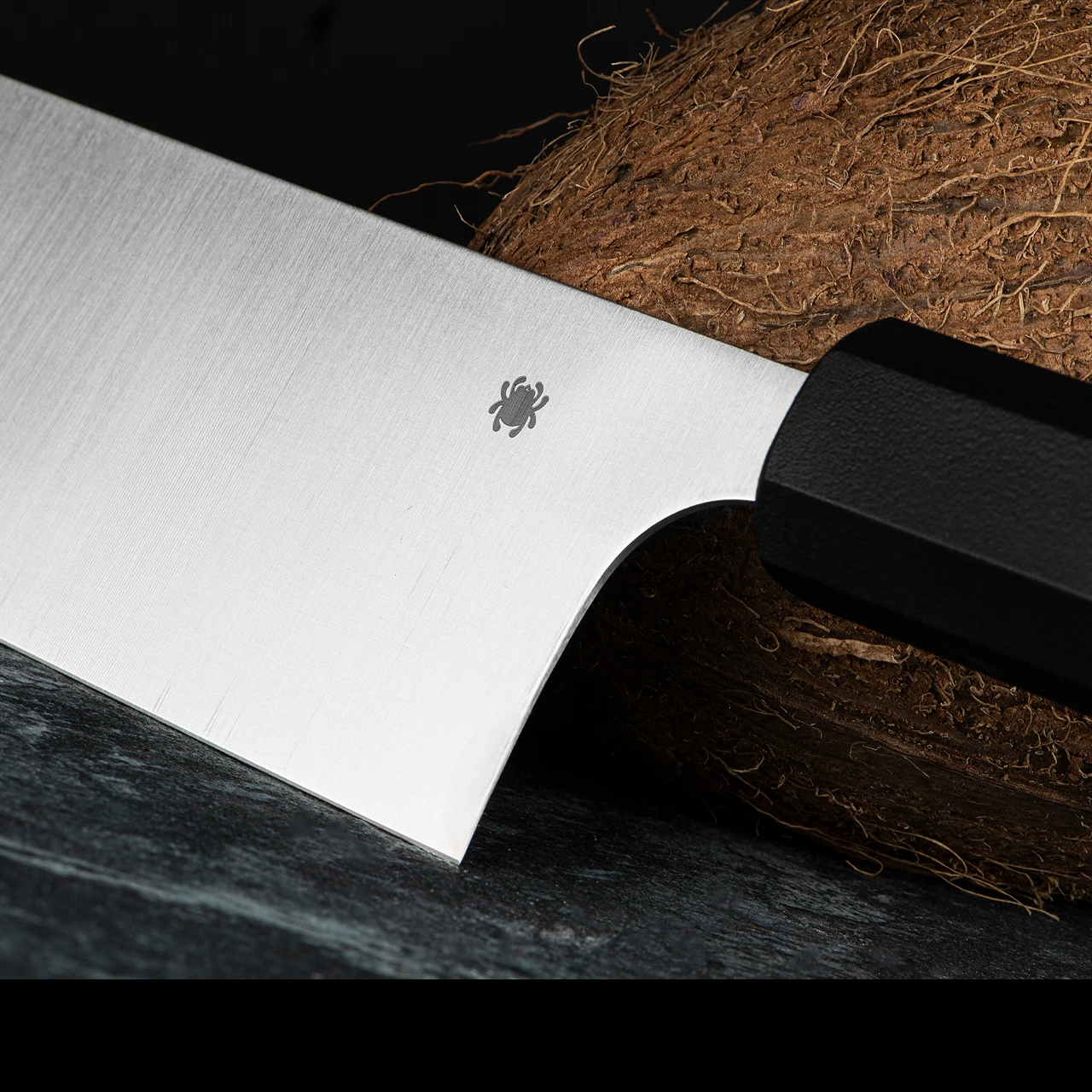 This is the Spyderco Carter Minarai Nakiri. A nakiri knife is a “vegetable cutter” with a unique rectangular shape and slightly upturned edge make it the perfect tool for precisely push-cutting all kinds of vegetables. The Nakiri’s blade shape also allows its length to remain consistent after years of sharpening.