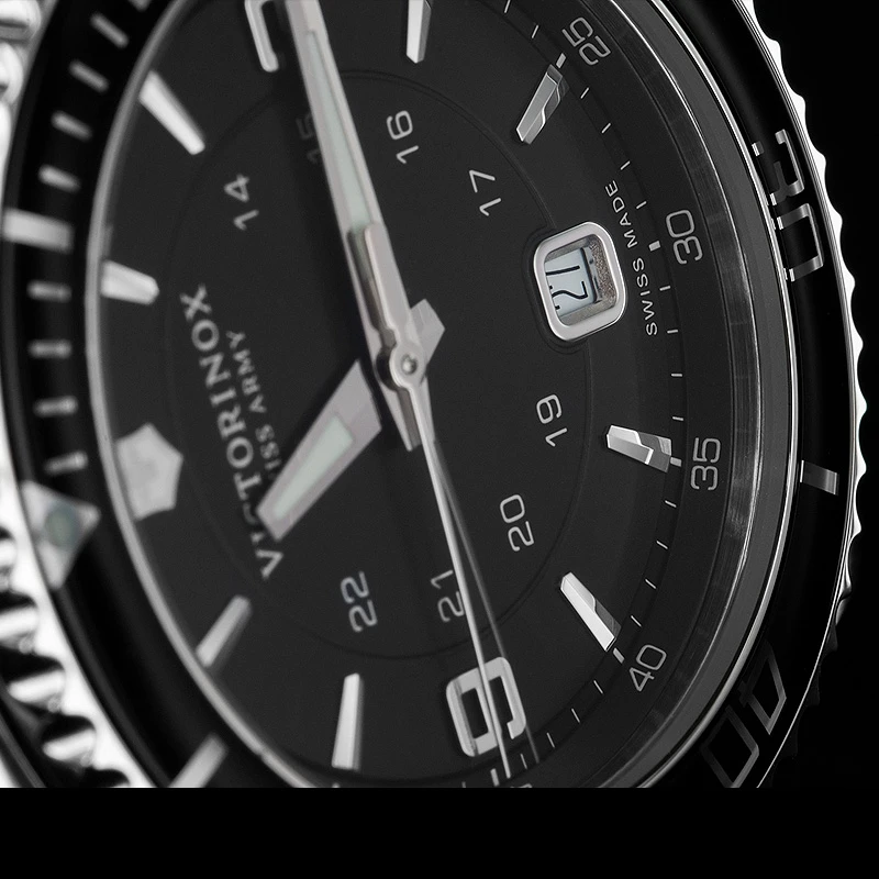 Bezel: stainless steel, black, polished, unidirectional rotating bezel