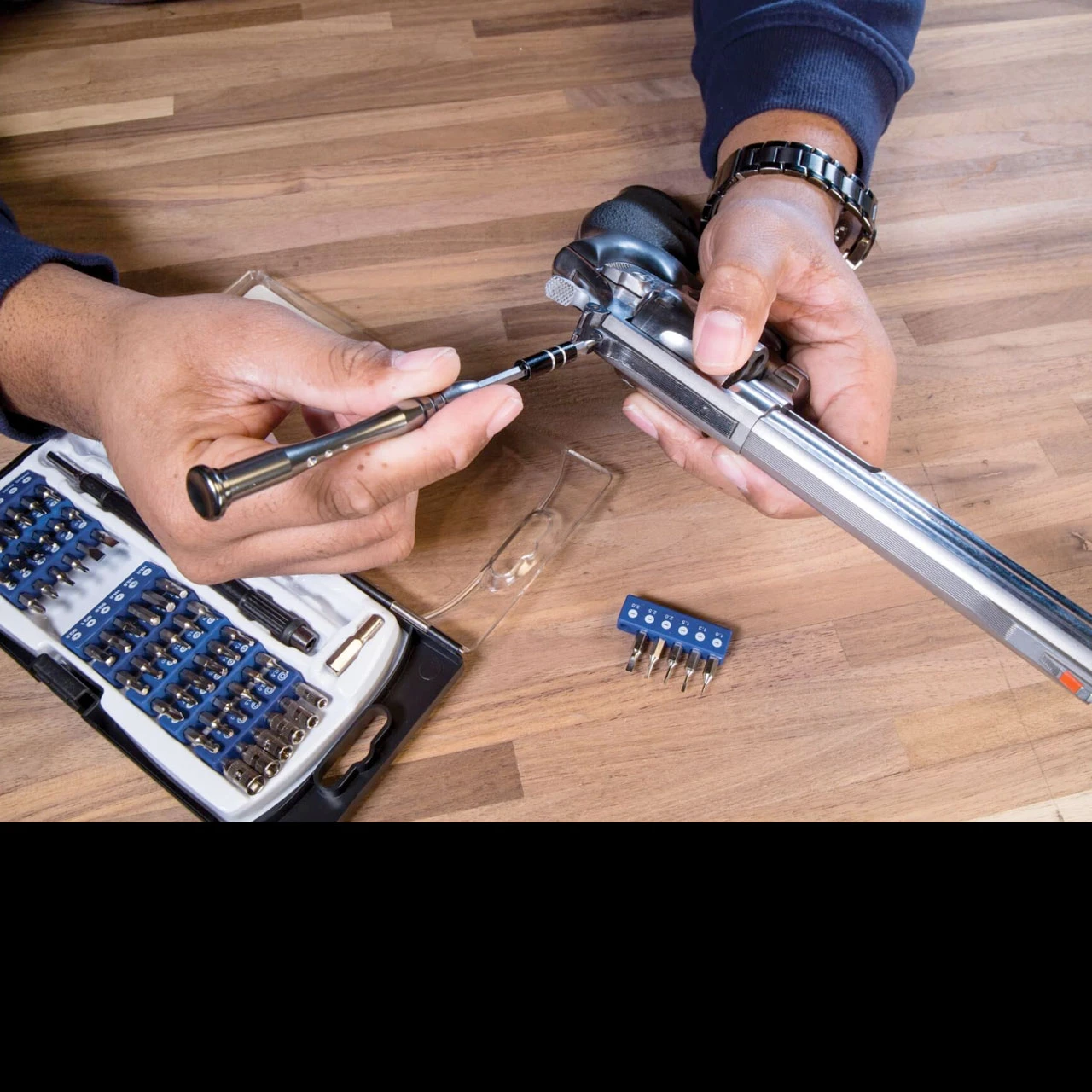 This 58 piece Wheeler Precision Micro Screwdriver Set is the perfect size to throw in your range bag. Use the extra small bits for adjusting everything from sights to lasers and even your safety glasses. The array of bits is perfect for even the smallest of screws. The set even comes with a convenient carry case.